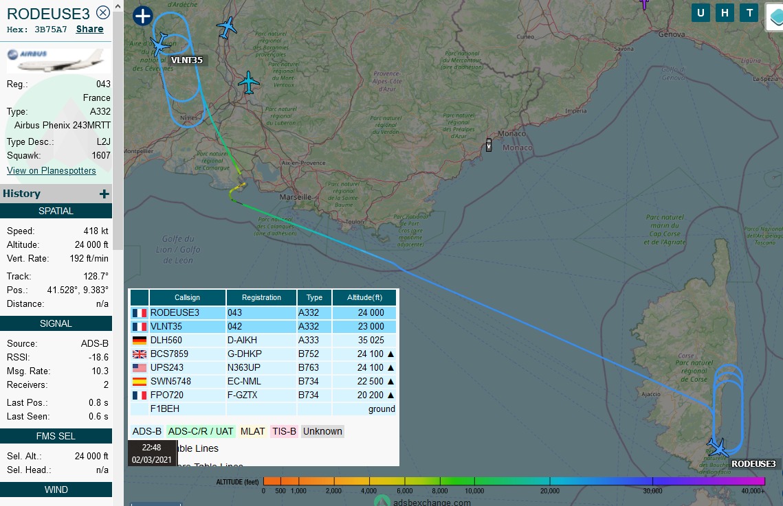 2ème exercice Belote de l'année avec l'A330 MRTT "RODEUSE 3", en plus du traditionnel "VALIANT 35" (sur l'axe "Diana") :